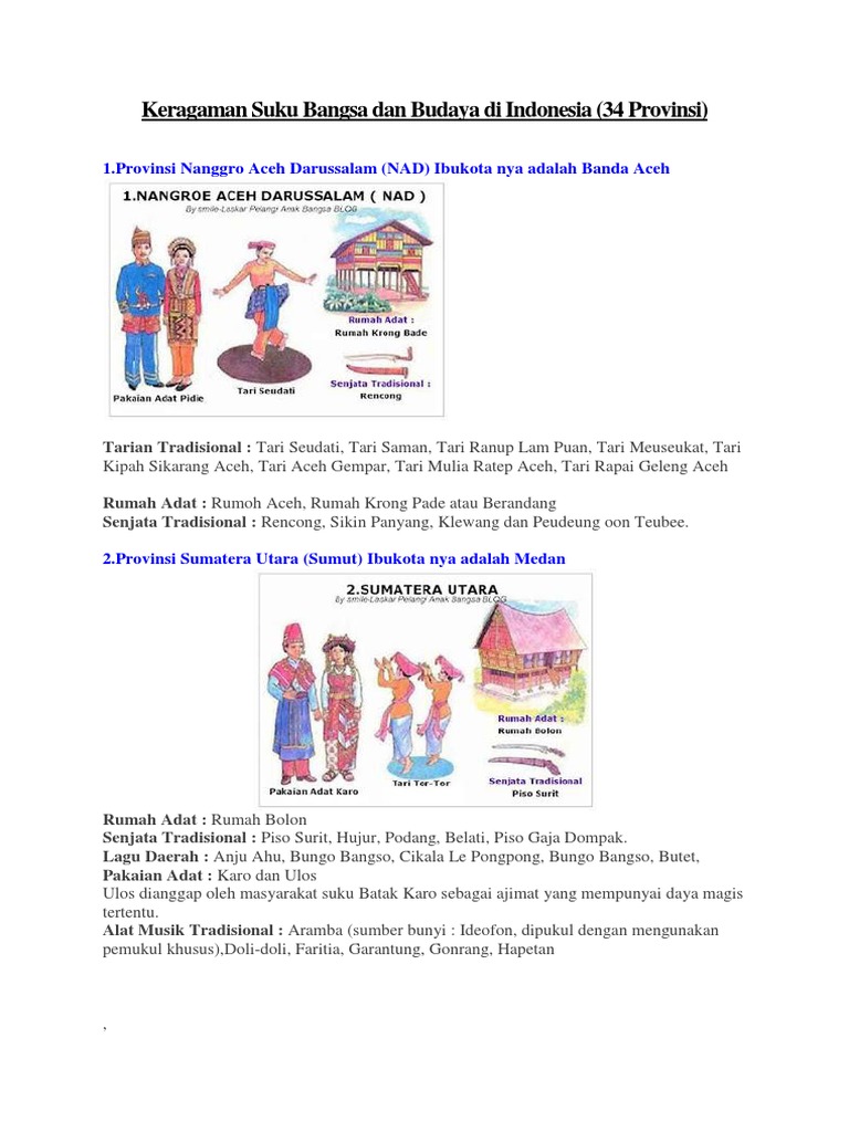 34 Provinsi Rumah Adat Pakaian Tarian Tradisional Senjata Tradisional Lagu Bahasa Suku Julukan Di Indonesia